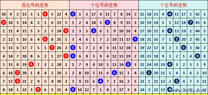 近10期012路比总比例为13 : 9 : 8,0路号码出号较热,上期开出012路比为1 : 1 : 1;本期预测012路比1 : 1:1。