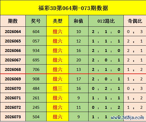 福彩3D上期开出奖号为504,奖号为组六形态,和值为9,012路比为1 : 1 : 1,奇偶比为1 : 2。